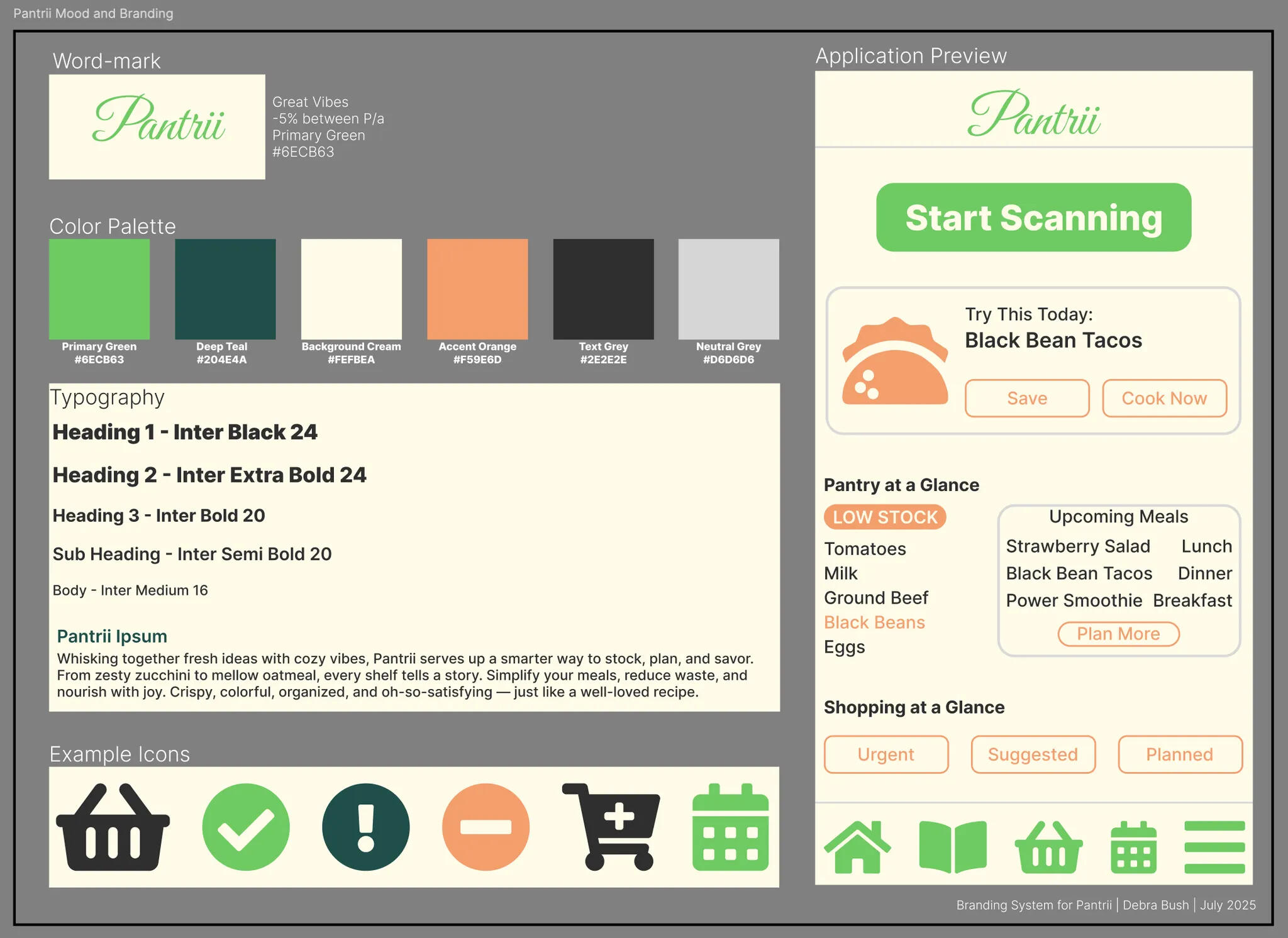 Pantrii began as an exploration of how everyday systems can feel supportive rather than demanding. The problem wasn’t inventory tracking itself, but the friction, guilt, and cognitive overload that often accompany food planning and waste reduction.Rather than optimizing for speed or feature density, I focused on designing a pantry system that paired functional clarity with emotional tone. The goal was to create a tool that helps people make better decisions without requiring constant attention, discipline, or stress.